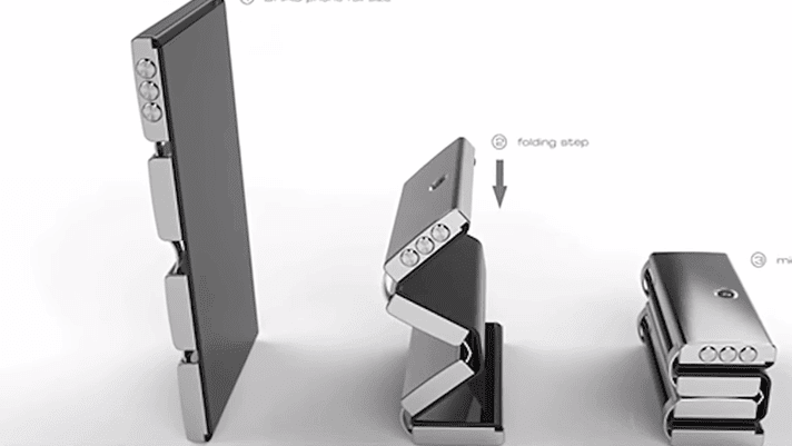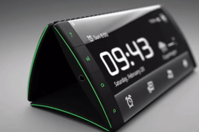 لعل هذا الهاتف الذكي يكون الاكثر غرابة في العالم ، في الحقيقة هو أنه يمكن طيه وفي حين أن هذا الهاتف يحتوي على شاشة لمس كاملة غير قابلة للكسر ويمكن طيها 180 درجة في ثلاث اتجاهات وهذا الابتكار يسمح له أن يكون الأكثر أحكاما لانك يمكن استخدامه وطيه بأكثر من طريقة فيمكن أن تستخدم نصف الهاتف أو الهاتف كله كشاشة وعند طيه يحافظ على وظائفه ويستمر في عرض الاشعارات والمعلومات الهامة التي تتابعها في شكل أنيق فيبدو ان الهاتف غريب نوعا ما ولكن نحن علي يقين من انبهارك به .